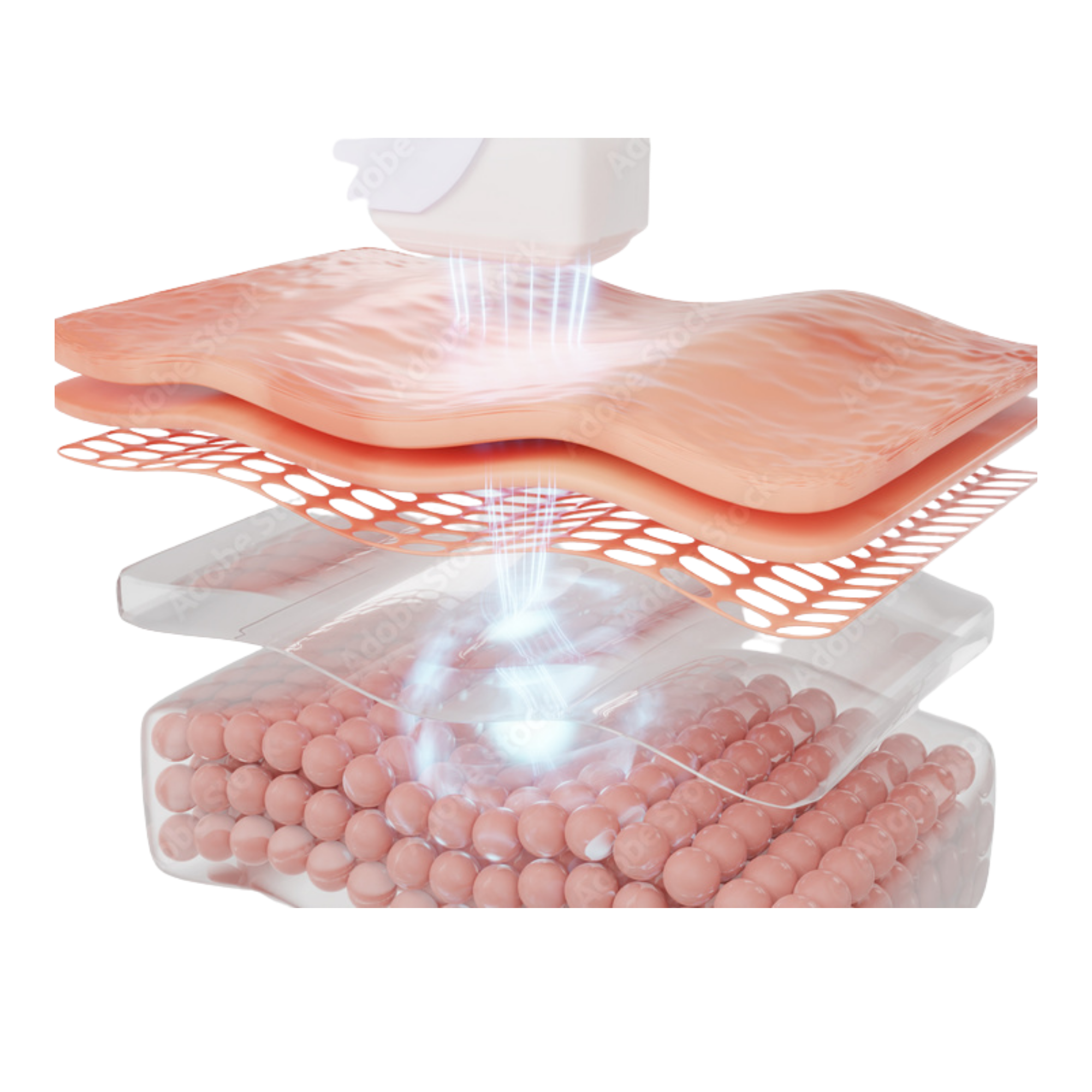 HIFU (High-Intensity Focused Ultrasound) targets the deeper layers of the skin to stimulate collagen production and tighten tissue from within.